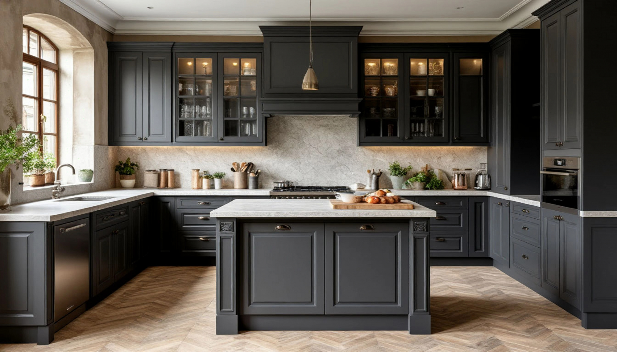 Цвет графит в "Тибур" играет ключевую роль. Он задает настроение всему пространству: спокойное, глубокое, сосредоточенное. В интерьере он может быть дополнен светлыми оттенками стен или столешницы, а также теплыми акцентами – деревом, камнем, текстилем. Такое сочетание придает кухне особую глубину и динамику. Но даже если оставить графитовый цвет доминирующим, он не будет казаться тяжелым: наоборот, он придает интерьеру завершенность и особый шарм.
