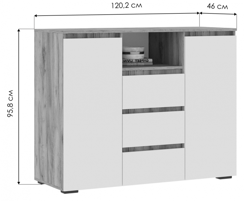 Комод Элла КМ 01 белый / дуб крафт золото (120,2x46x95,8).