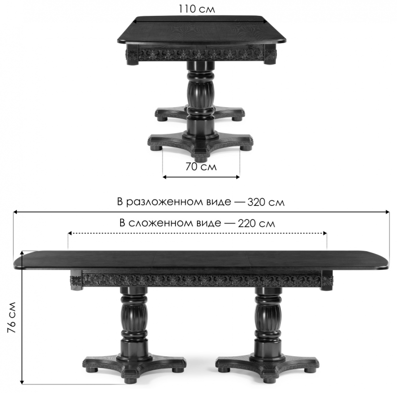 Длина стола в разложенном виде: 320 см.