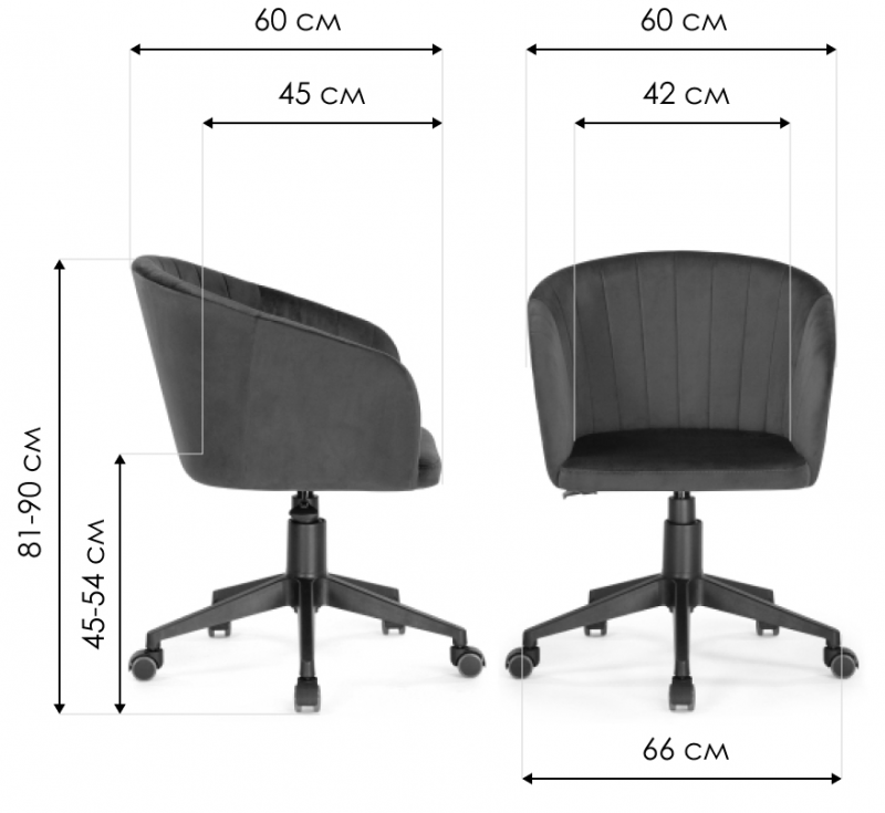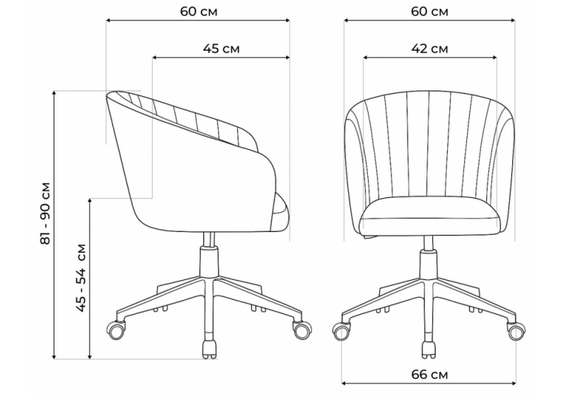 Высота сиденья максимальная: 54 см Диаметр крестовины: 66 см